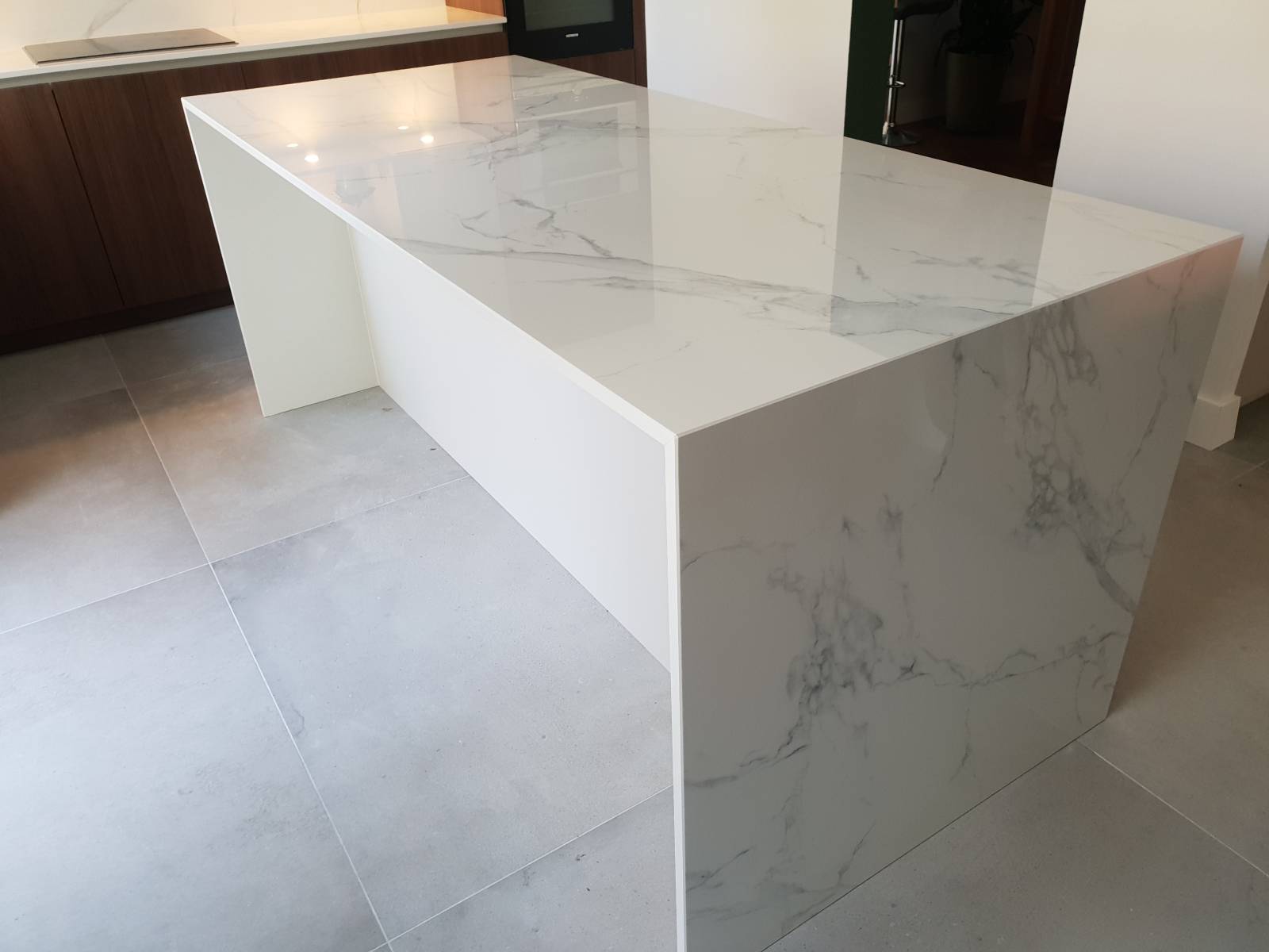 Le NATURA est un dekton blanc veiné imitation marbre.