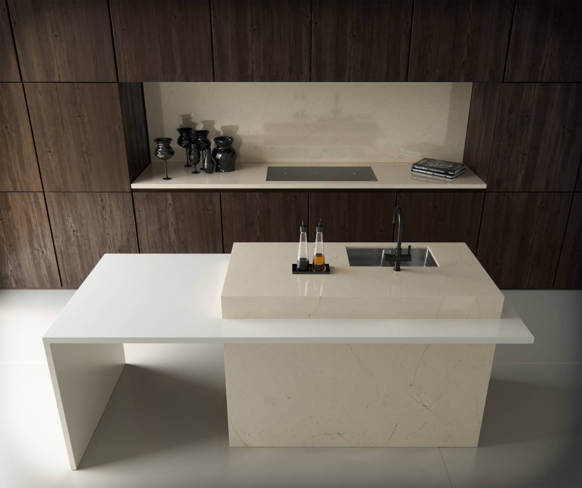 Retrouvez un coloris ton pierre avec le quartz Eternal Marfil à prix cassé chez HM Deco.