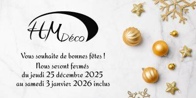 HM DECO sera exceptionnellement fermé du 25 décembre au 03 janvier 2026 pour les vacances de Noël.