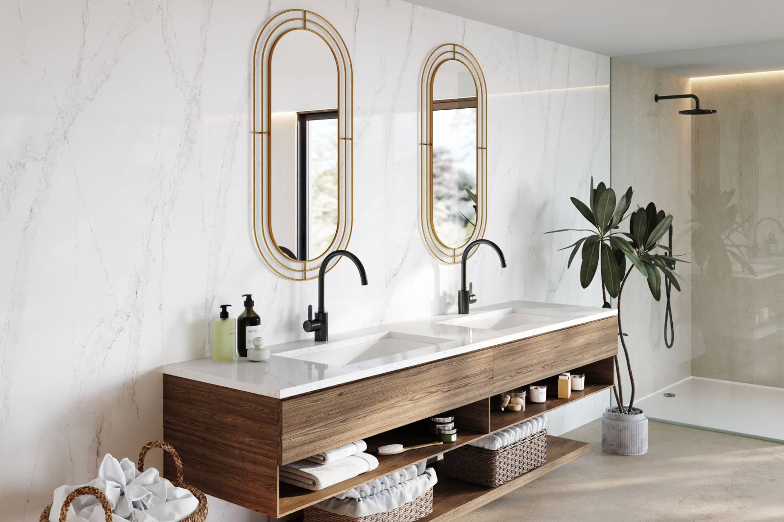 Le Bronze Rivers s'inspire du marbre blanc avec son léger veinage gris et doré, créant un effet naturel et sophistiqué. Ce coloris est idéal pour donner du caractère à votre cuisine ou votre salle de bain tout en s'intégrant harmonieusement avec divers styles d’aménagement, du moderne au classique. Grâce à sa texture finement nuancée, et sa finition brillante, il apporte une touche de chaleur et de luxe à vos espaces.