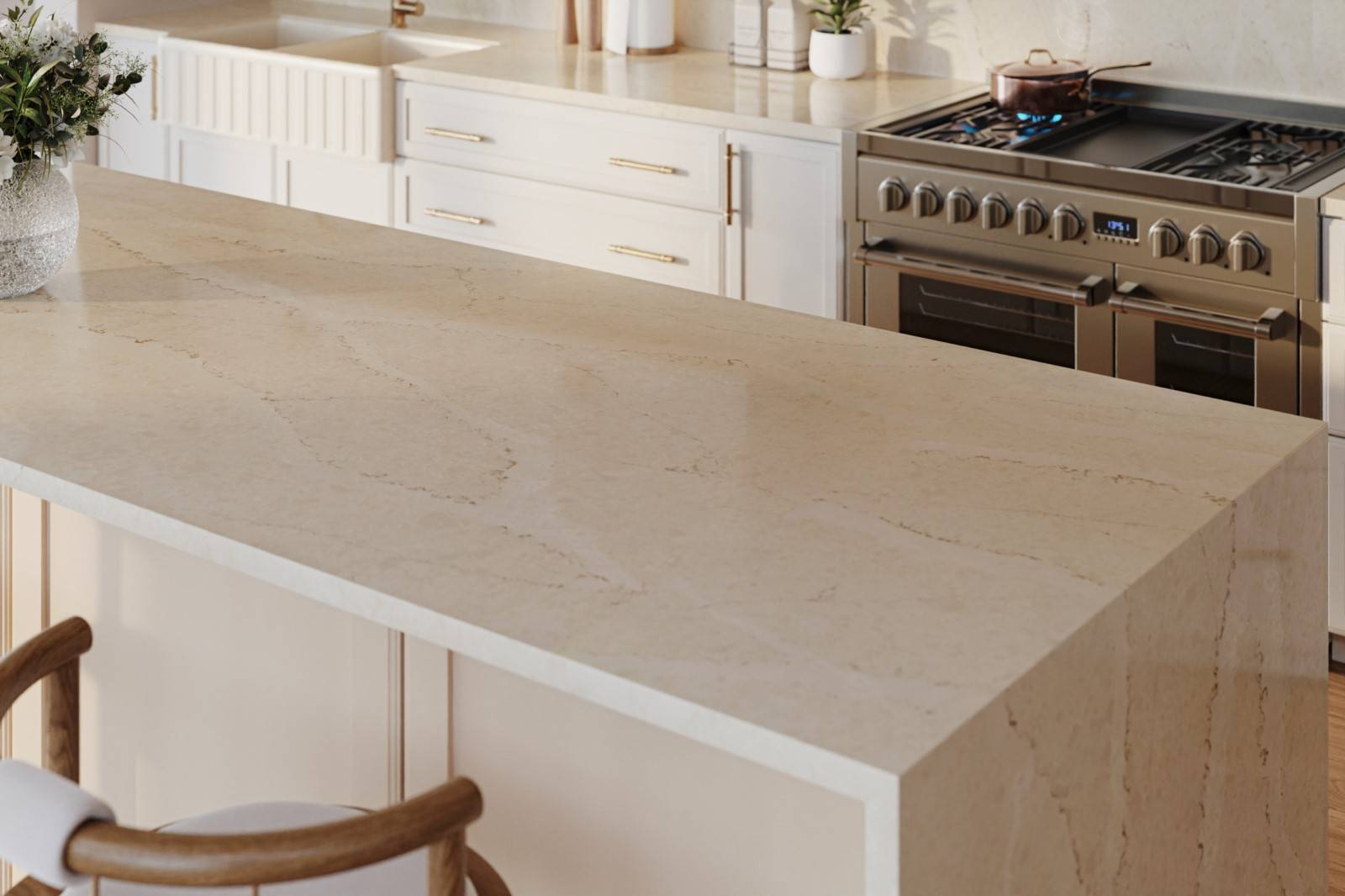 Le Silestone Calacatta Tova fait son entrée parmi les coloris les plus raffinés pour vos projets de cuisine et de salle de bain. Inspiré du célèbre Calacatta Gold, il en reprend le charme des veines prononcées tout en se distinguant par une teinte plus beige, idéale pour créer des ambiances chaleureuses et contemporaines.