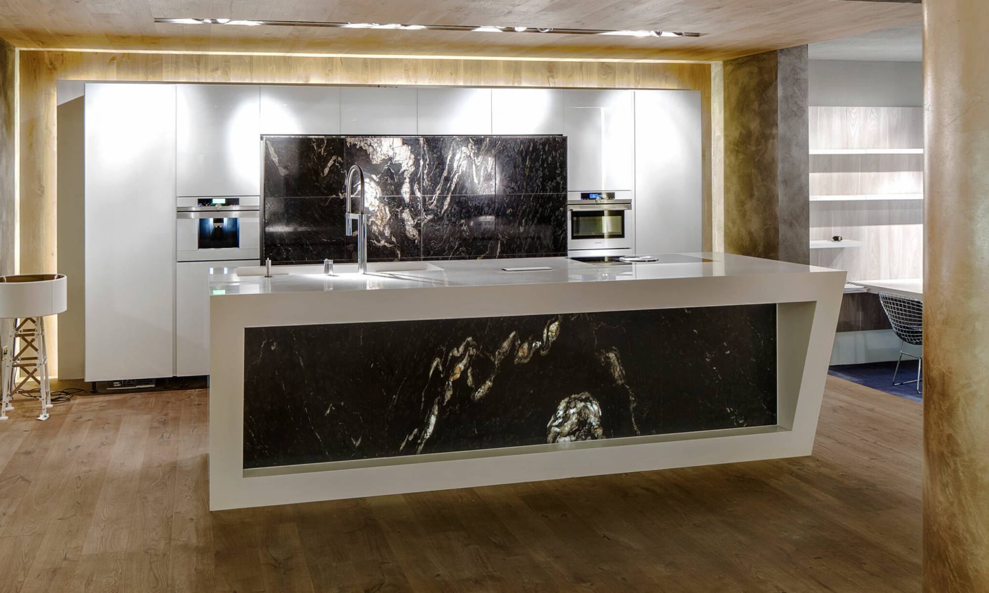 Ses reflets argentés et dorés captent la lumière et donnent du relief à votre plan de travail. Vous pouvez également choisir la finition qui vous convient le mieux : polie, pour un effet brillant et lisse ; adoucie, pour un effet mat et doux ; satiné.