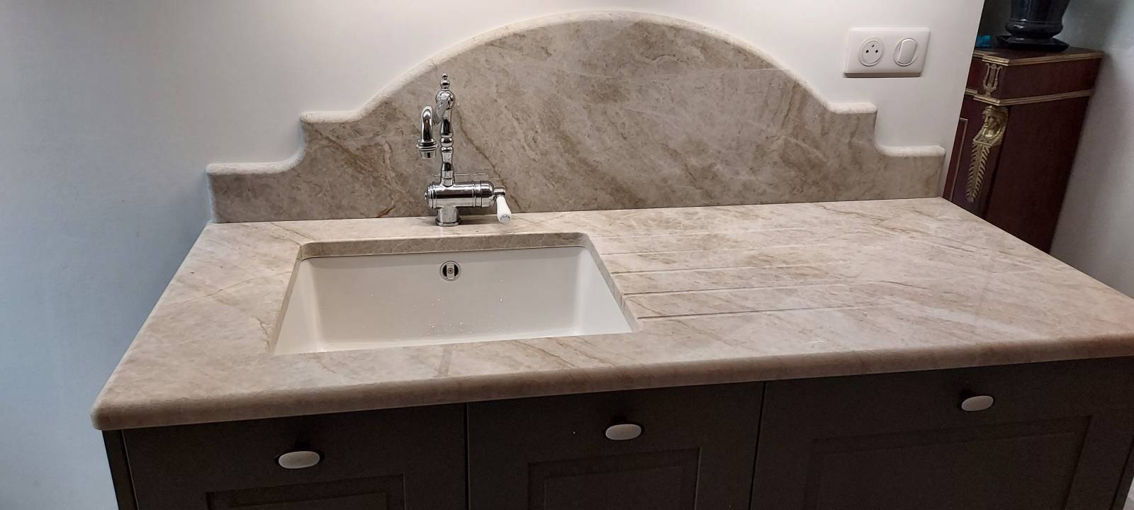 Les photos que nous partageons ici témoignent du soin et de la précision avec lesquels nos équipes de HM Déco travaillent. Chaque projet est unique, et notre savoir-faire s'exprime dans chaque détail, de la découpe parfaite à la pose irréprochable. Que ce soit pour une cuisine élégante ou une salle de bains raffinée, le granit Taj Mahal séduit par sa durabilité et sa beauté intemporelle.
