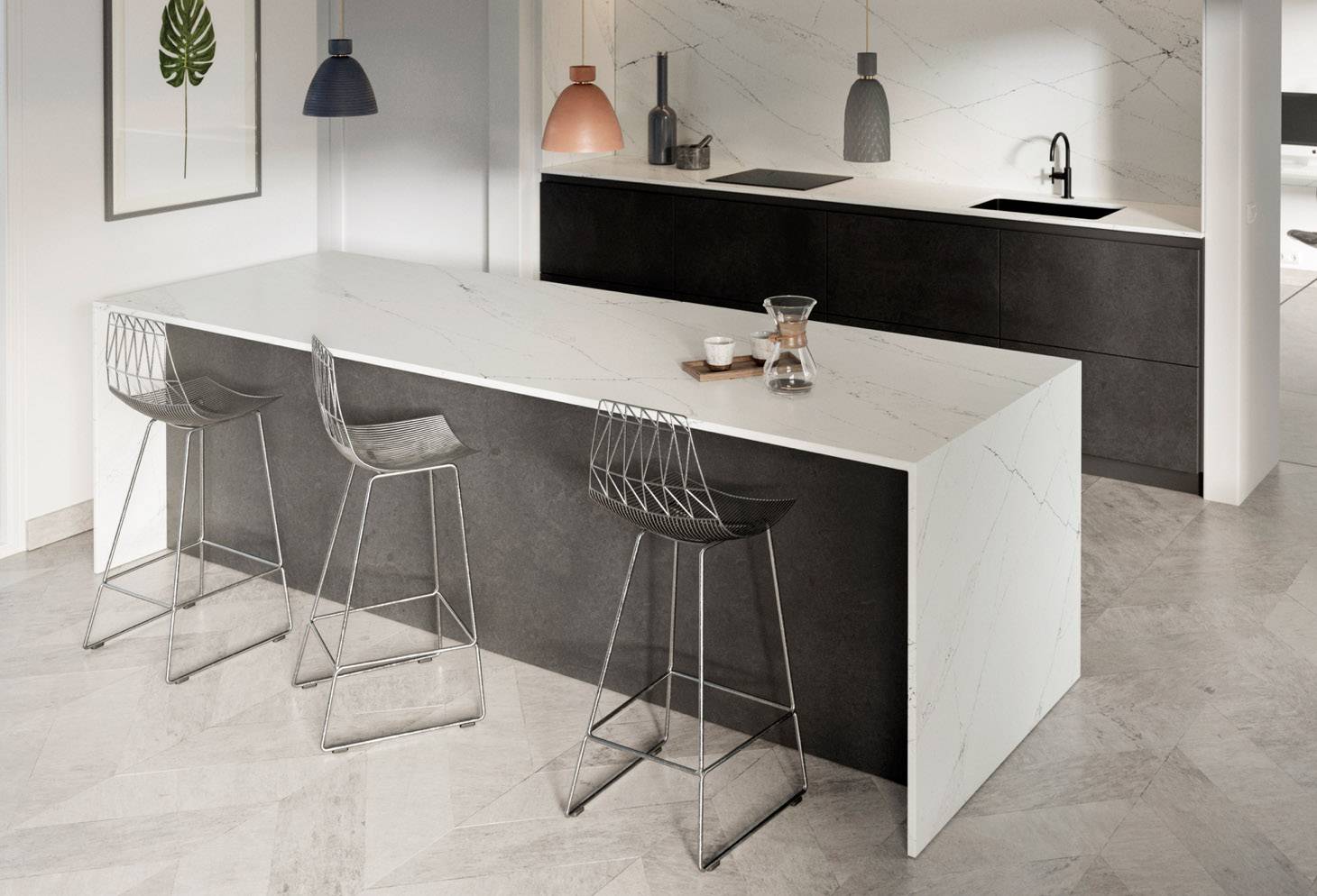 Le coloris ETHEREAL NOCTIS est un quartz blanc assez sombre avec des veinures grises, qui donne un côté chaleureux et en même temps sérieux à votre pièce.