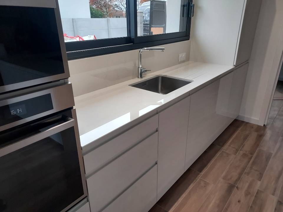 Avec son ton clair et raffiné, le Dekton Glacier s’adapte aussi bien aux cuisines modernes qu’aux ambiances plus classiques. C’est l’occasion unique de profiter d’un matériau haut de gamme devenu rare, idéal pour un plan de travail, une crédence ou un petit îlot.