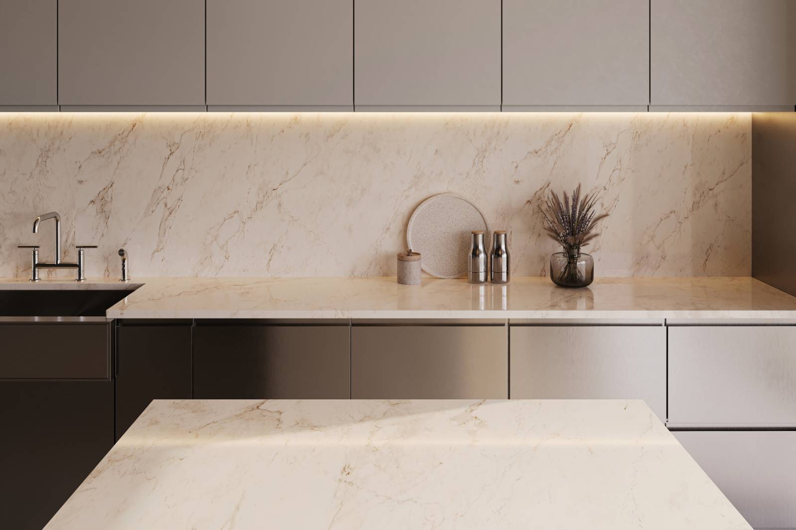 Ce mélange unique en fait un choix idéal pour les plans de travail de cuisine, où performance et esthétique doivent aller de pair.
