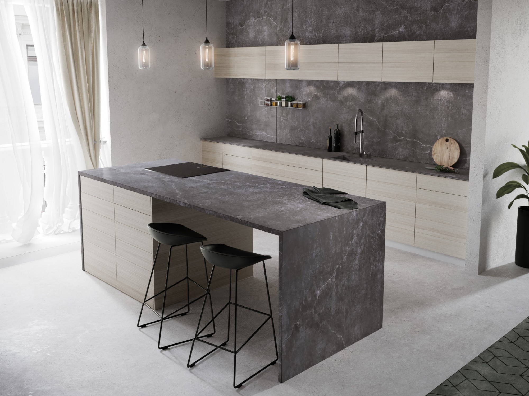 Son aspect un peu usé et ses couleurs sombre donnent au coloris de Dekton LAOS un aspect résolument industriel.