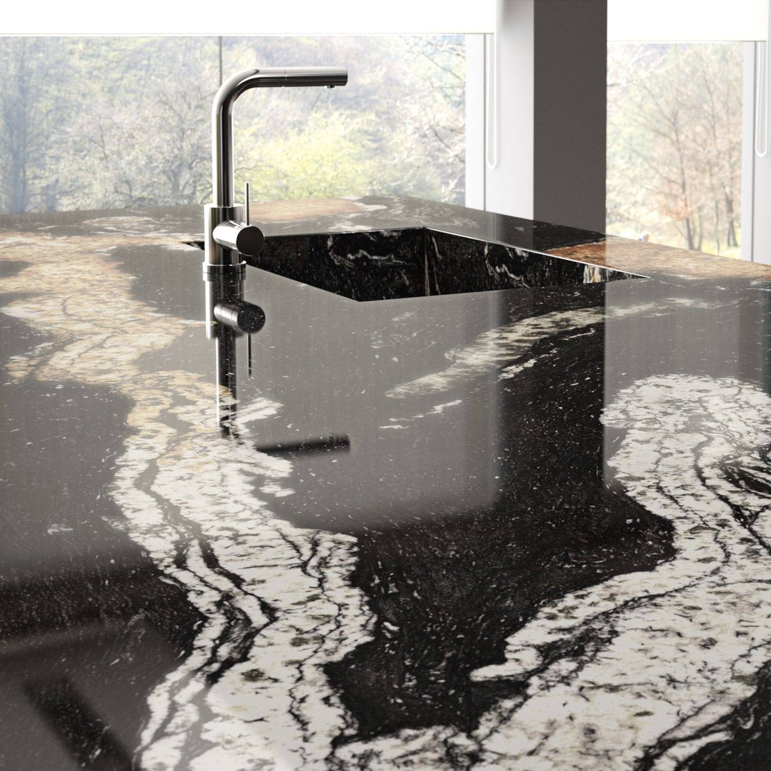 Chaque morceau de ce granit haut de gamme est une pièce unique, parfaite pour sublimer une cuisine, une salle de bain ou encore un îlot central design.
