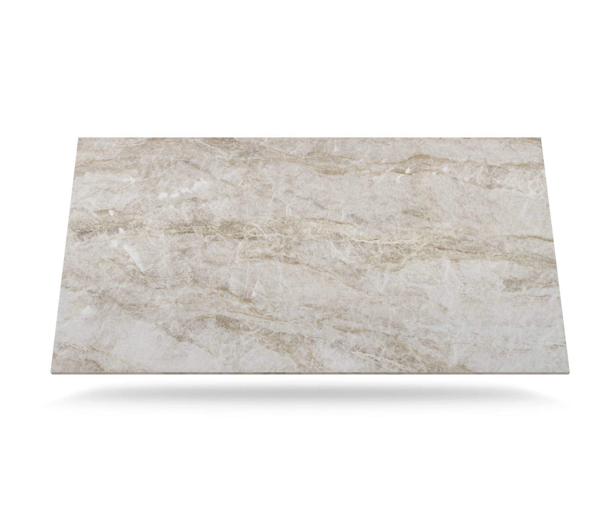Ses tons beiges et grisâtres ainsi que ses veines cristallines lui confèrent un aspect très naturel et sa finition brillante/polie lui offre une belle luminosité.