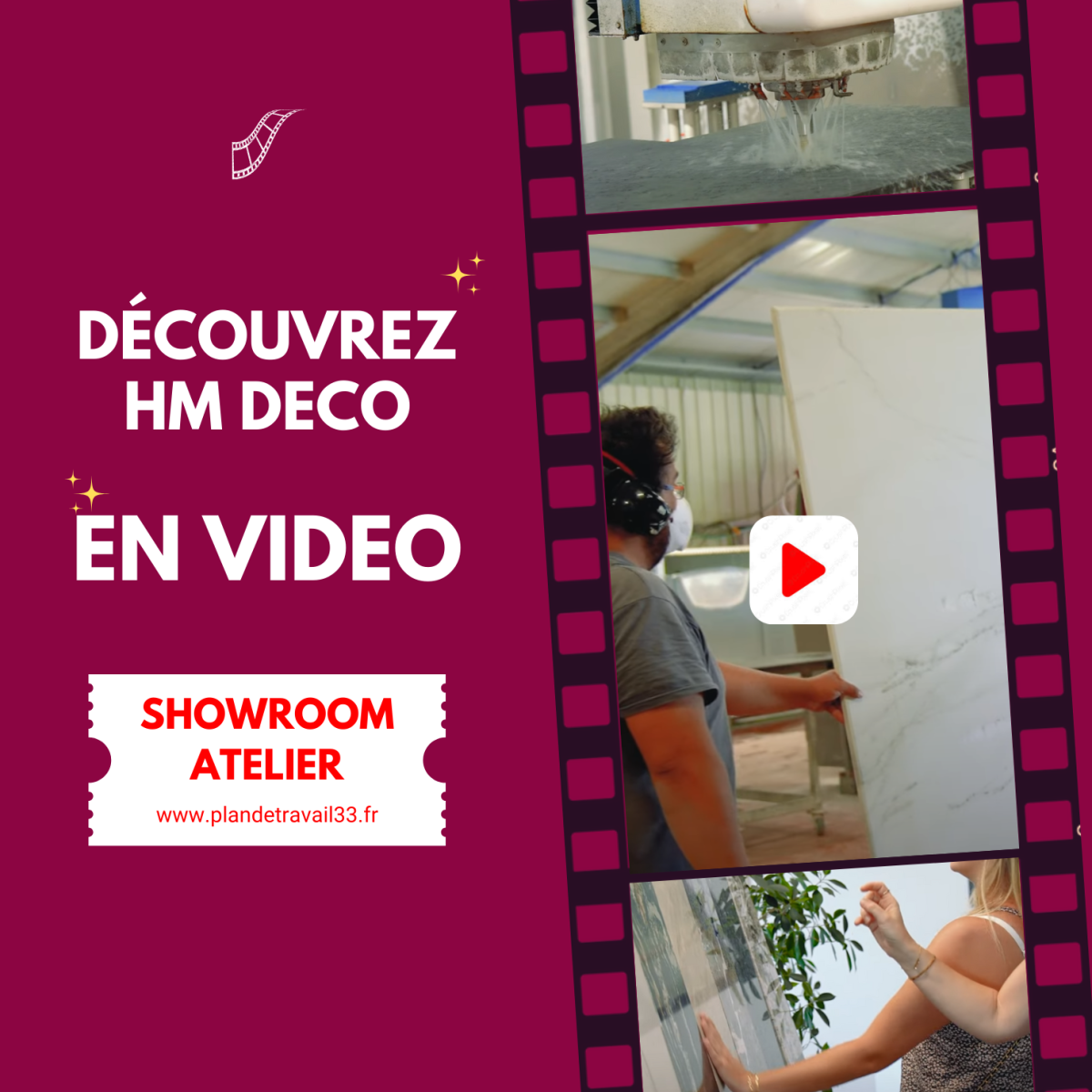 Découvrez le showroom Hm déco à Biganos et les ateliers de fabrication des plans de travail de Gujan Mestras en vidéo.