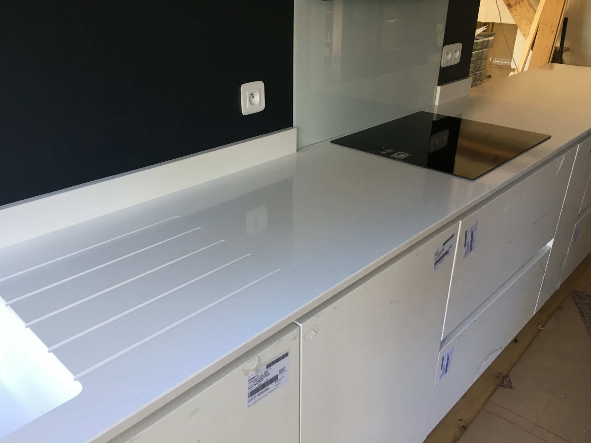 Nous nous proposons le Quartz Classic White, en finition polie ou suède en 2 ou 3 cm.