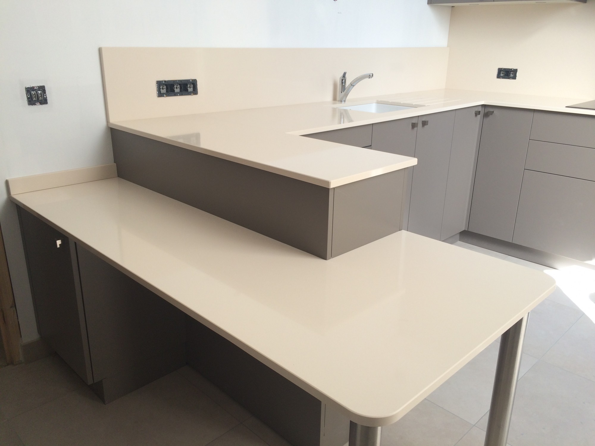 Plan de travail en quartz beige en déstockage actuellement dans nos ateliers.