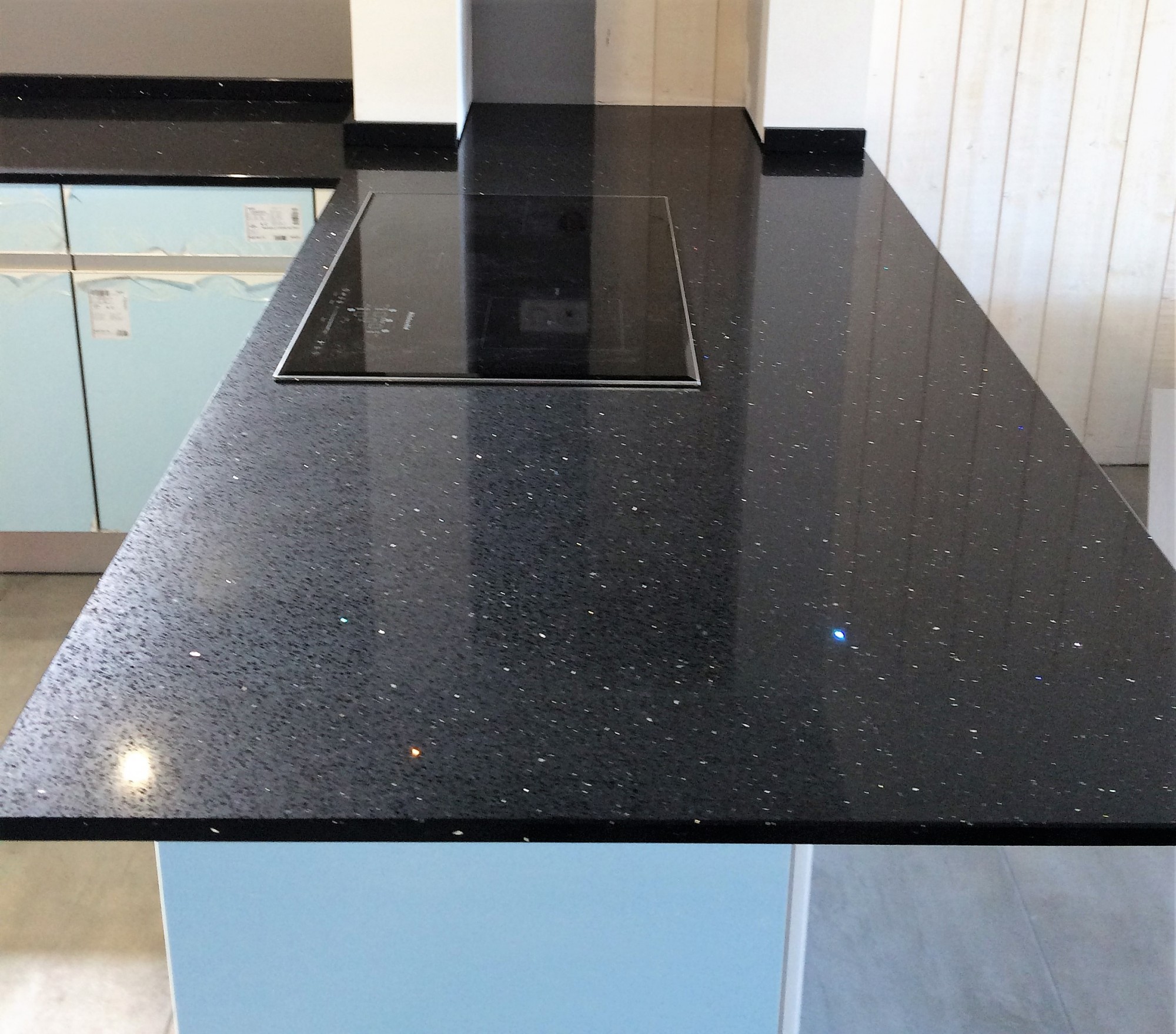 Venez découvrir le coloris Negro Stellar, un coloris noir incrusté de paillettes pour iluminer votre cuisine ou votre salle de bain.
