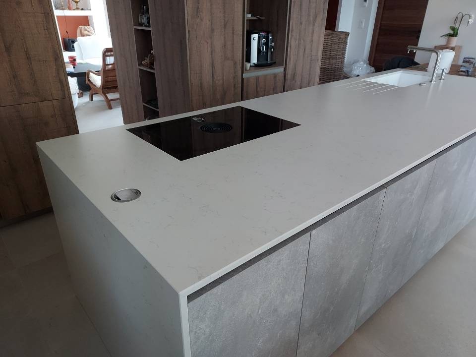 Plan de travail en QUARTZ LAGOON en destockage actuellement dans nos ateliers.