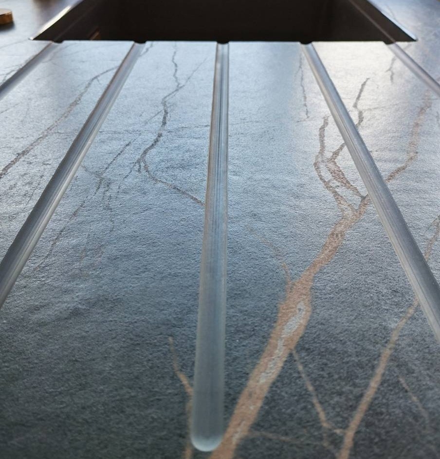 Le rainurage de votre plan de travail fait partie des demandes les plus récurrentes lorsque vous créez votre cuisine. Le rainurage égouttoir se compose de 5 rainures légèrement en pente permettant l'écoulement de l'eau en douceur.